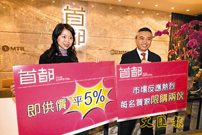 【本報訊】(記者 梁悅琴)由長實集團及港鐵合作發展的將軍澳日出康城1期首都今日會公布首批首推第5座單位售價,明晚推售,發展商長實集團地產投資董事黃思聰昨表示,至今已累積收到逾6,000票,90%為私人名義登記,為了令更多市民可以選購到首都單位,每名買家(無論是私人名義及公司名義)於開售首天最多只可選購2伙,若銷情好,此限制亦會持續下去。選用即供分期付款可享5%樓價優惠,而以私人名義採用建期付款,首期20%於150天內分4期支付,公司名義選用建期付款,首期25%於180天分5期支付。