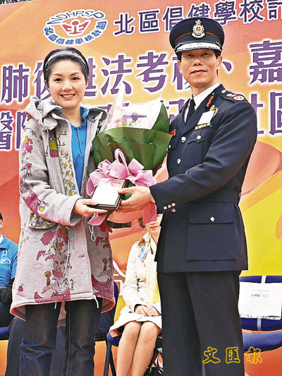 【本報訊】(記者 李思穎)楊千嬅以「心肺復甦」大使身份為「心肺復甦法考核嘉許典禮」擔任主禮嘉賓,親眼見證學生們進行急救考試而獲頒證書,千嬅自己亦不慎於日前患上感冒,昨日抱恙出席,開聲也感到辛苦。曾經當過護士的千嬅,對急救有基本認識,這方面對個人生活有所保障,例如返內地拍戲吊威也,即使出現瘀傷也懂敷冰。