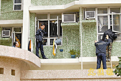 警方趕到現場,發現老婦拒絕開門,還走入睡房反鎖自困,數名警員苦勸不果,遂爬上一樓簷篷,隔窗向老婦好言開解,其餘警員則從媳婦房間攀窗入屋,將安然無恙的媳婦帶離單位。