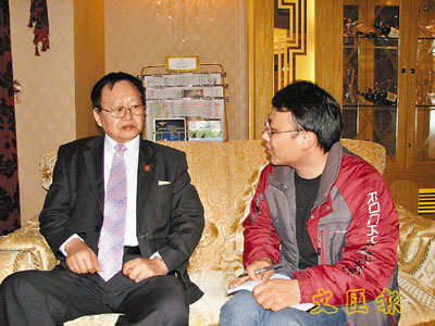 ■台企聯會長張漢文(左)接受本報記者專訪時表示,料25萬在大陸的台商返台投票。本報記者 攝
