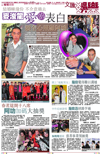 至於情人節,麥浚龍雖表示與記者過節,不過就甜絲絲地說過得十分開心。問到可是和他的結婚對象?麥浚龍說:「結婚和感情都要看緣份,冇得push。」更強調不會介意阿嬌的過去,因為每個人都有自己的經歷,愈少人談論,事件就愈快完結,而且和一個人拍拖時,要全心去照顧和愛對方,不會去理會或介意她的過去。當記者指阿嬌真幸福時,他笑說:「這是我的看法,作為朋友應該要關心。要遇到適合的對象,拍拖或結婚也要講緣份。(你的緣份已到?)都是傳媒認為,我暫時仍以工作為主。」