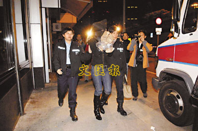■其中一名涉於酒吧內公然集體索K被捕的女子,由警員帶署。