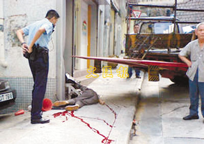 ■06年8月老婦在第三街被一輛打開尾板溜後貨車鍘死的現場。資料相片