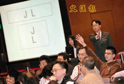 ■車牌「JL」競投激烈,最終以110萬元成交。左圖為投得該車牌的神秘男子。本報記者梁祖彝 攝