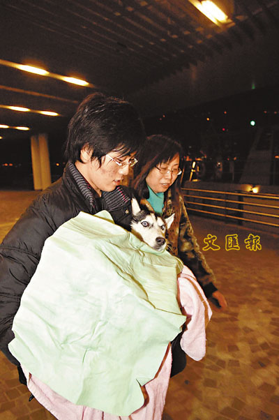 【本報訊】一頭西伯利亞雪橇犬,昨凌晨由主人帶同在紅磡海邊散步時,雪橇犬疑興奮過度在黑暗中墮海,主人遍尋不獲報警,消防及水警輪到場經一番搜索無獲,幸雪橇犬失蹤3個小時後,在尖沙咀公眾碼頭被人發現救起,狗主趕至與愛犬重逢時仿如隔世。天寒地凍下於黑漆海面游足3個小時的西伯利亞雪橇犬屬雌性,名叫「雪雪」,約1歲半大,身長約2呎多,黑白毛色,樣子頗為可愛。