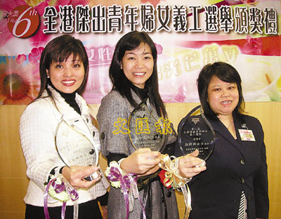 ■葉麗嬋(左起)、郭玲麗及郭群興積極參與義工服務,同獲全港傑出青年婦女義工殊榮。本報記者鄭佩琪 攝