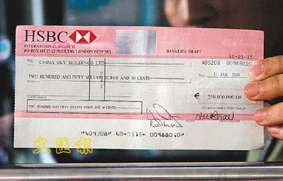 ■圖為面額高達2億5千萬歐元的假匯豐銀行本票。本報記者溫瑞麟 攝