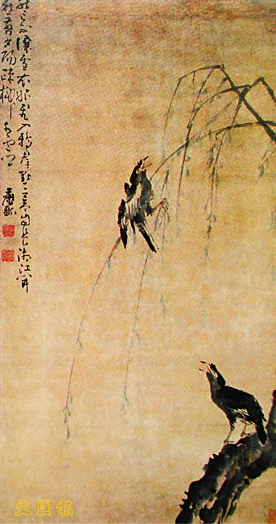■(清)黃慎《柳樹雙禽圖》