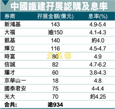 【本報訊】(記者 張以正)今日中午截飛的中國鐵建(1186)H股,其孖展認購部分共累計借出不少934億元,相當於超額認購超過50.2倍。