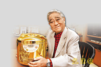 ■信興集團主席蒙民偉和樂聲牌電飯煲。 本報記者張偉民 攝
