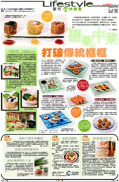 中國烹飪歷史源遠流長,技術博大精深,手法變化之多,是其他地方菜式所不及,但廚師們不可故步自封,因為時代不斷進步,一代代人的口味都不同,所以要突破框架,創製出新口味,正如美心中菜的翠園和香港君悅酒店的港灣壹號的大廚剛完成中菜「翻新工程」。