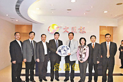 江門市政協主席趙基耀 (右四)一行昨日蒞臨本報,受到本報董事總經理仇學忠(右五)、副總編輯劉曼軍(右二)等熱情接待。 本報記者胡雁 攝