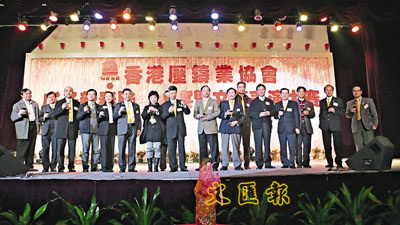 ■香港壓鑄業協會新春聯歡晚會,賓主在台上祝酒。