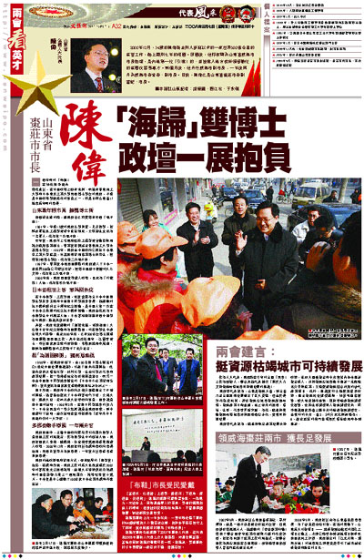 一個年輕的「海歸」在如此短時間內得此重任,在中國政壇上鮮有先例。而擁有華東理工大學和日本東京工業大學兩個博士學位的陳偉,不僅是中國政壇學歷最高的官員之一,亦是目前山東省17地市最年輕的市長。