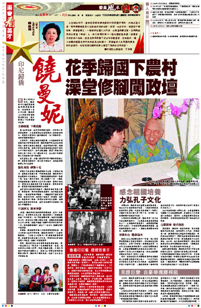 上世紀60年代,當她從排華浪潮洶湧的印尼回國求學時,內地正值文革,眼神裡還滿是對人生前途未知的迷茫。然而,40多年來,她卻從下鄉知青、澡堂修腳工,一路做到全國人大代表、山東省僑聯主席。在剛剛結束的山東省「兩會」上,她又被選為第十一屆全國政協委員。這個昔日的客家小姑娘,就是在僑界服務了近40年的饒曼妮,在她看來,個人命運的變遷在時代洪流前是如此渺小,而豐富的人生經歷和肩負的社會責任,恰好使這位歸僑的身上增添了幾許淡定和從容。