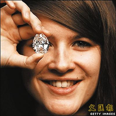 1995年拍賣的100.10克拉梨形鑽石「季節之星」,以破紀錄拍賣價約1,655萬美元(約1.3億港元)成交。 ■《紐約郵報》/英國廣播公司