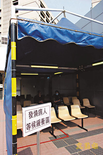 ■屯門醫院急症室門外亦增設了簡陋的「發燒病人區」,但昨日輪候的病人不多。本報記者潘政祁 攝