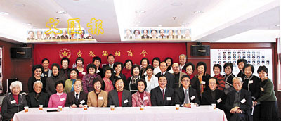 ■香港汕頭商會慶祝三八婦女節,賓主合照。本報記者沈清麗 攝