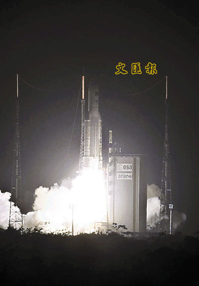 ■載著「凡爾納號」的火箭發射一刻。法新社