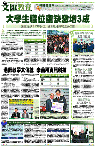香港大學學生發展及資源中心就業總監陳秉光表示,據該校截至今年2月的畢業生就業調查,仍然待業的07年畢業生少於1%,反映整體就業情況十分理想,而就業率亦較去年同期為高,其中以金融、會計、工程、地產行業職位較多。他指有應屆畢業生現時已獲企業羅致,就業展望樂觀,不過他又提醒,畢業生切忌因市況好轉而對行業興趣搖擺不定,應認真思考日後未來發展路向。
