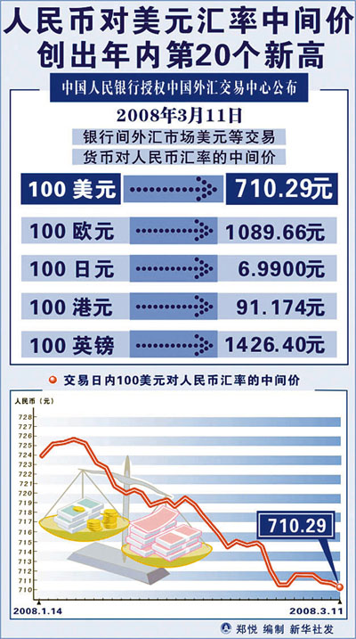 【本報訊】中國外匯交易中心數據顯示,在高開的中間價(7.1029)的帶動下,昨日人民幣兌美元盤中曾創出7.1000的新高。全日人民幣兌美元收報7.1029元,較上日收盤價7.1029元持平。交易員表示,7.1關口還是有阻力,人民幣全日最後還是回到了7.1050-7.1060的交易區間。儘管昨日發布的中國2月居民消費價格指數(CPI)漲幅創新高,但市場之前已有預期,對匯價影響不大,其中雪災等特殊因素影響較大,不代表全面通脹,加上兩會期間匯價多會維持平穩走勢,預計人民幣近日仍將繼續整理。但長期來看仍增加了人民幣的升值壓力,加上人民幣已持續盤整蓄勢逾一周,不久或將伺機拉升。