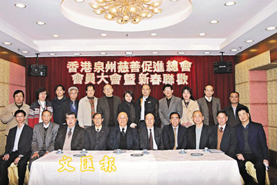 【本報訊】香港泉州慈善促進總會2007年會員常年大會暨新春聯歡晚會,日前在北角新都會酒樓舉行。會長陳守仁在會上致新春祝辭,祝大家新春進步,財源廣進,萬事如意。董事局主席駱志鴻作會務報告,王萬材作財務報告。董事局副主席蘇千墅、楊華陽、姚加環等出席。
