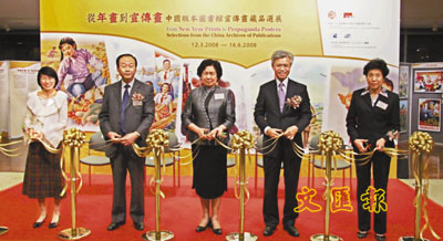 【本報訊】(記者 潘曉平)香港歷史博物館於3月12日至6月16日展出中國年畫、廣告畫、宣傳畫,畫作的創作年代從清末民初至1960年代,其中包括了國寶級的毛澤東時代美術作品《開國大典》和《毛澤東去安源》的複製品。展覽畫作由香港歷史博物館與中國版本圖書館提供,其中有從內地精挑細選的作品47件,香港方面提供了14件作品,主要是早期廣告畫、年畫。