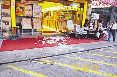 昨清晨6時許,一名約60歲婦人偕女友人同往上址酒樓品茗,其間懷疑她沒有注意通告,拉動故障的玻璃門時,玻璃突然脫落塌下,擊中婦人額頭,繼而跌在地上粉碎,留下大堆碎片,幸因屬強化玻璃,故碎片並不銳利,婦人僅額頭受輕傷,獲送院治理後已無大礙。