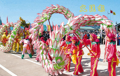 15天上午,浙江普陀山祥龍飛舞(見圖)、鑼鼓喧天。第18屆「普陀山之春」旅遊節暨普陀山「國際修學之旅」啟動儀式在此隆重舉行。來自日本、泰國、中國台灣等地友人組成的會旗方隊、彩旗方隊、文藝表演隊共3000餘人,引來了四方遊客,埸面浩大。據了解,本屆旅遊節以北京奧運會為背景,把「迎奧運,促和諧」作為節慶主題,通過一系列活動,弘揚我國佛教文化。 ■本報駐浙江辦梅婷婷