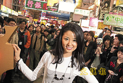 ■林心如在旺角街頭拍攝引起過百途人圍觀。