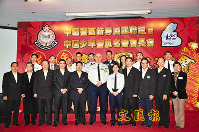 【本報訊】(記者 鄭群)中區警區新春滅罪聯誼暨中區少年警訊名譽會長會新春團拜酒會,日前於香港銅鑼灣警官俱樂部禮堂舉行。新春團拜邀請署理助理警務處長畢禮廉、中聯辦港島工作部副部長吳仰偉、西區民政事務專員尤桂莊、中西區區議會主席陳特楚蒞臨主禮,中區警區指揮官趙慧賢,中區少年警訊名譽會長會會主席李應生分別代表主人家向大家拜年,並希望新的一年警民繼續攜手合作。