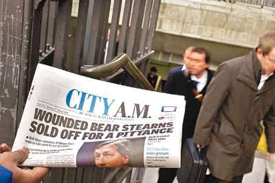 ■美國報章以頭版報道摩根大通收購貝爾斯登一事。美聯社