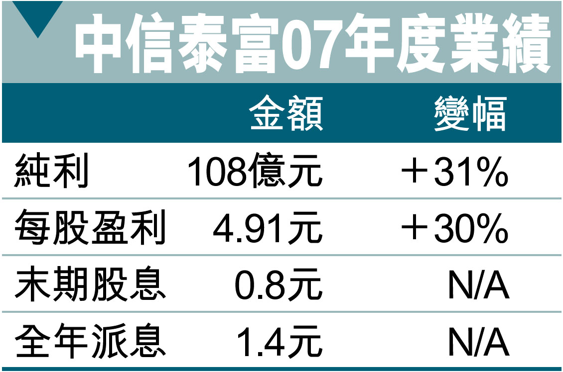 中信泰富賺108億增31% (圖)