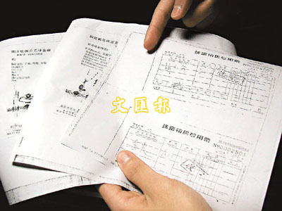 ■「夕陽團」老人在本港拿到的珠寶購物發票複印件。本報實習記者魯欣 攝