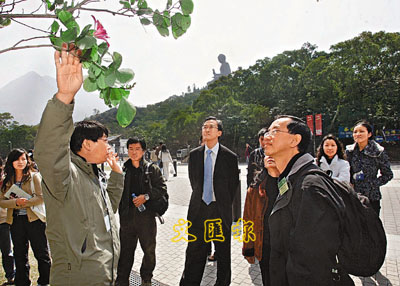 ■昂坪自然中心早前舉辦免費導賞團,天文台台長林超英(前右)也參與活動。