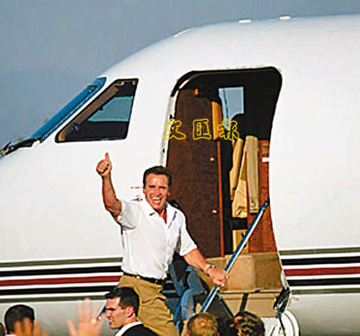 ■阿諾舒華辛力加每天乘搭私人飛機上下班,真是「飛」一般的州長。網上圖片