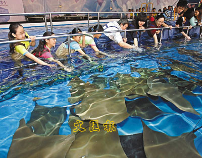 想與鯆魚水中同行、近距離與奇特的青蛙和海洋無脊椎動物見面,市民緊記於3月21日至4月20日到海洋公園參與「高清動物月」。海洋公園主席盛智文昨日親自「落水」宣布,今年舉行的動物月將設全港首個「鯆魚全接觸」活動,並舉行全東南亞最大型的「蛙式」派對,沙雕高手更在園內砌出大型沙雕展覽。既是高清接觸,當然少不了讓遊客與動物親親的機會,遊客凡捐贈港幣40元予保育基金,便可穿上防水裝束走進魚池親親鯆魚,與來自深海的鯆魚在水中同行,如捐贈20元餵飼鯆魚,則可一嘗當餵飼員的滋味。