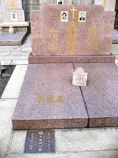 ■恆豐酒店創辦人孻子李德義指堂兄弟李漢輝的墓碑緊貼在其伯父母李齊長及伍儀貞墓台腳下左邊,違反墳場管理守則。