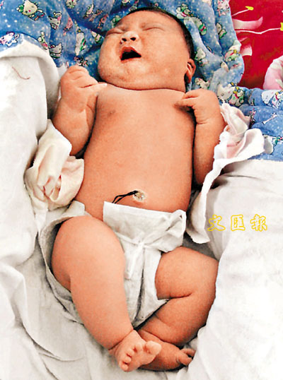 日前,在山東濟南解放軍四五六醫院,一位濟寧籍孕婦剖腹產下一個體重達6.2公斤(13磅半)、身長55厘米(22英寸)的男嬰。該男嬰體重是正常嬰兒的兩倍。目前母子健康狀況良好。新華社