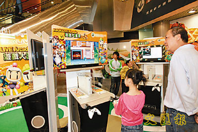 昨天,我於朗豪坊遊逛的時候,當走出Marketplace後,便看到微軟Xbox 360在B2舉行「Xbox Give Me 5 Arcade遊戲月」,放置了六部遊戲機,不少小朋友正在遊玩中,看真一點,全部遊戲都是Arcade遊戲,小朋友玩得非常開心。據知,由即日起至4月12日,這兒會一次過有120款Xbox Live Arcade遊戲讓大家盡情試玩,當中包括新推出的Arcade遊戲,如Rocketmen: Axis of Evil、Brain Challenge、Boogie Bunnies等。