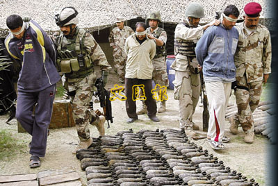■伊拉克士兵15日破獲一宗陰謀,拘捕數名叛軍及繳獲大批武器。路透社