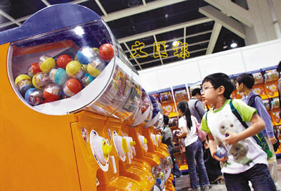 「第2屆香港玩具.扭蛋Show」昨天起,一連3天在香港會議展覽中心舉行,場內設有1,121部扭蛋機,較去年的200多部多逾4倍;場內更有多個參展商,推出限量版及最新的產品。全球首次推出、會場內限量1,000套發售的麥嘜造型香皂及麥嘜沐浴露,分別以成本價20元及10元出售。