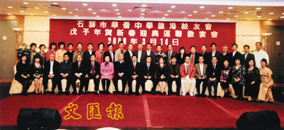 【本報訊】(記者 黃曼霞)石獅市華僑中學旅港校友會戊子年賀新春迎奧運聯歡宴會,日前在北角新都會酒樓舉行。晚會筵開25席,席間財神派利是,校友踴躍上台獻唱,抽獎助興,令與會賓主盡歡,皆大歡喜。