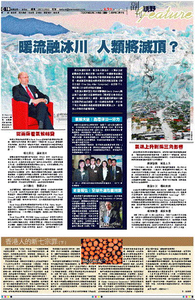 世界頂尖氣候變化和冰河學專家David Drewry剛出席了由英國文化協會舉辦的「氣候變化帶來的挑戰:地極柱的消失」講座,揭示遙遠的兩極冰川融化對我們的迫切威脅。另一位講者陸恭蕙,亦分析了珠三角地區的急速經濟發展釀成氣溫上升,在環境上所帶來的嚴重惡果。