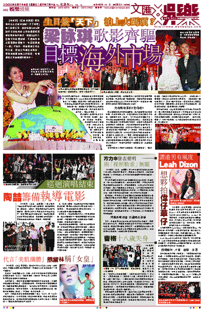 昨日也是梁詠琪的生日,特地選在這天舉行簽約儀式,可謂雙喜臨門,Gigi先跟美亞董事總經理唐慶枝及「天下媒體」總裁卓伍一起燃點煙花儀式,可是當Gigi接過未燃點的火棒後即突然著火,頓把她嚇一跳。很快便平定情緒的Gigi高舉煙花棒當成奧運火炬,但不忘為剛才的意外說:「個心未驚完。」