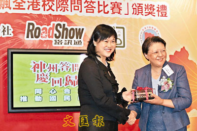 ■范徐麗泰(右)、伍穎梅出席「神州答問」全港校際問答比賽頒獎禮。