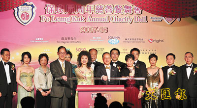 【本報訊】(記者 沈清麗)標誌著保良局邁進第130年的「周年慈善餐舞會」,日前在灣仔君悅酒店隆重舉行。香港特區行政長官曾蔭權、民政事務局局長曾德成蒞臨大會,與保良局主席劉陳小寶、節目籌委會主席顏寶鈴主持「保良局跨越璀璨129、邁向光煇130」亮燈儀式。