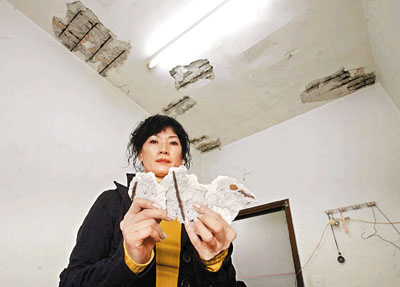 ■陳小姐收樓後發現房間的天花板鋼筋外露。本報記者劉國權 攝