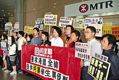 ■民建聯成員早前到港鐵總部請願,要求盡快落實全線提供月票及學生票優惠。資料圖片