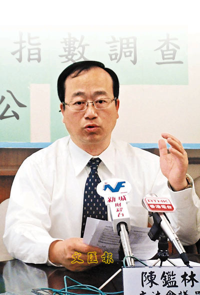 ■立法會議員陳鑑林於昨日公佈及講解「消費者信心指數」調查結果。